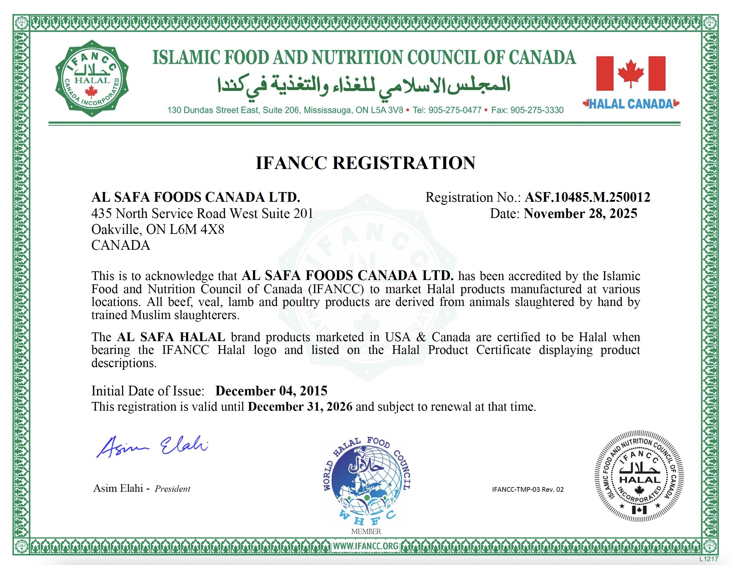 Al Safa Foods products are certified Halal by IFANCC (Islamic Food and Nutrition Council of Canada).